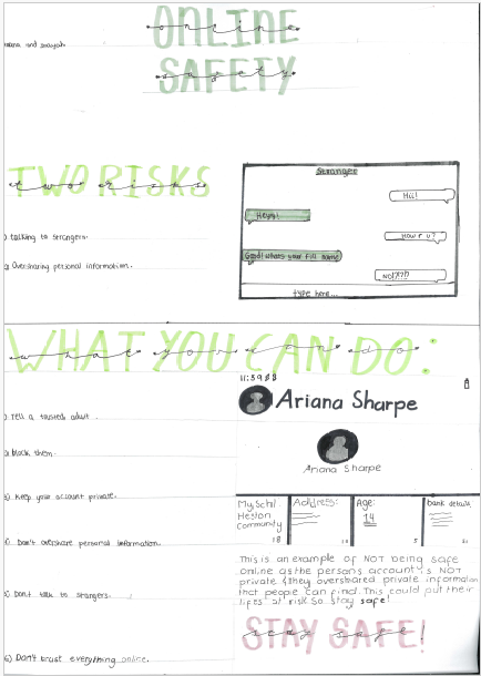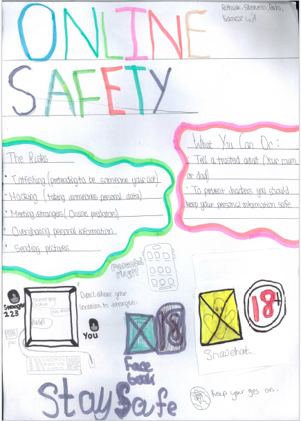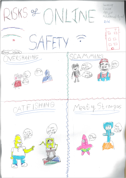 Inayah Mughal [7Y]: We wrote about online safety to show awareness of the dangers and risks that could occur, we learnt how to stay safe online and know the major risks online. Online safety is really important because it can teach you how to stay safe by protecting your personal information, not meeting strangers or talking to them online.