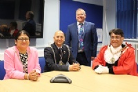 Headteacher, Phil Ward introduced all three visitors to a Sixth Form Assembly and both Mayors spoke to the students before having a tour of the school.