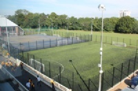 The pitches look very impressive surrounded by new fencing and are able to be floodlit for evening use. The green pitch, which is used mainly for football, benefits from the latest development in artificial grass technology; the surface is filled with sand and rubber. It looks like grass and