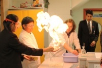 Hair raising scince experimentsThe prospective students and their parents also had a tour of the School with Heston students as their guides and were able to visit all departments and speak to teachers and students about life at Heston. The science laboratories, where visiting students were able to get some hands-on experience with explosions, flames and other hair raising activities, proved to be very popular.
